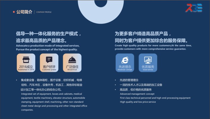 工程规模:该公司是集成套设备,箱体箱柜,医疗设备,纺织机械,电梯结构,汽车冲压,设备外壳,机加工,其他非标钣金设计加工等一体化办公的综合公司。