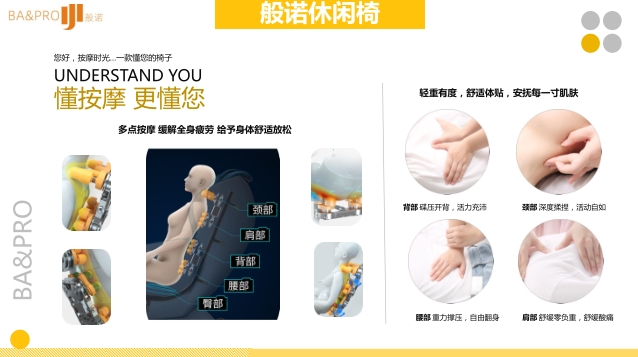 工程规模:苏州般诺休闲椅是随着现在人们的工作节奏加快,各种疲劳都有发生,专门为家庭,办公等休闲按摩而生,大健康事业的诞生品。各种按摩休闲功能让你把疲劳和不适丢向远方。